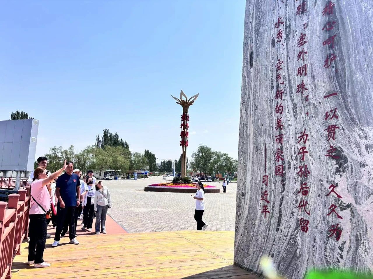 ac米兰官网中文网站党总支一行人首先来到了乌梁素海,这片被誉为“塞上明珠”的湖泊。我们沿着总书记曾经走过的道路,一路前行,感受着这片土地上的历史变迁和时代发展的脉搏。在乌梁素海边,我们驻足凝视,仿佛能听到总书记那铿锵有力的话语,感受到他对这片土地的深情厚意和对人民的殷切期望。