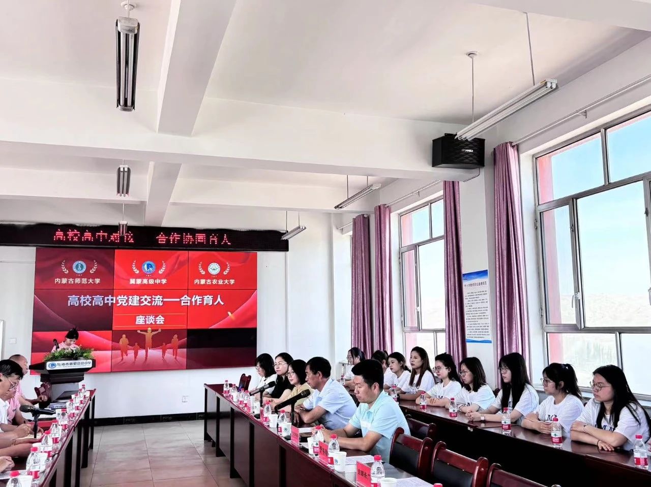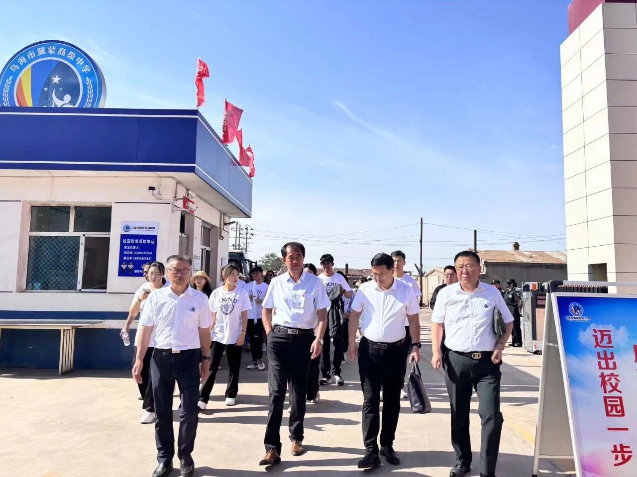 大会第三项,乌海市冀蒙高级中学校长倪后亮致辞。倪后亮校长从办学理念、办学目标和办学举措等方面介绍了乌海市冀蒙高级中学。又展望未来,希望乌海市冀蒙高级中学在市、区教育局领导的正确领导,厚爱关心中,内师大和内农大等一大批高校的合作支持下,一定会展翅飞翔,鹏程万里。
