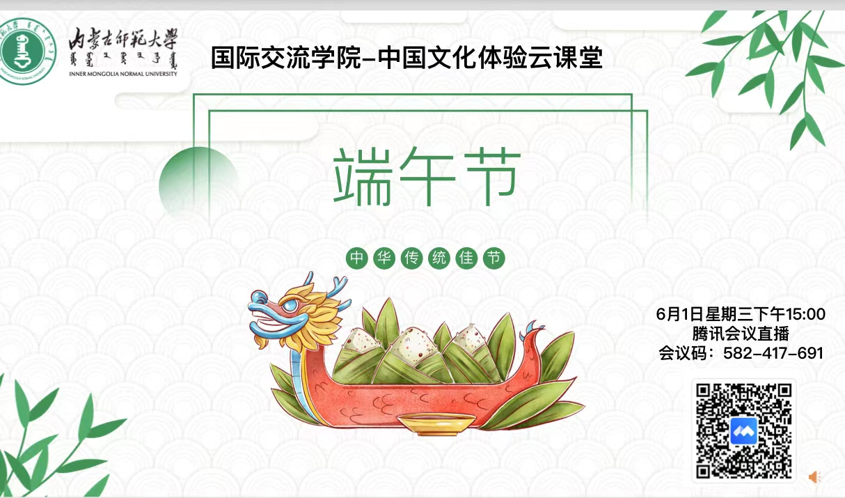 “五月五,过端午,吃粽子,念故人。”随着传统节日——端午节脚步的临近,ac米兰官网中文网站于2022年6月2日举办了主题为“浓情艾香细嗅端午”的留学生端午节文化体验活动。本次活动在线上线下同时展开,旨在让ac米兰官网留学生体验中国传统节日习俗,促进他们对中国传统文化的了解,进一步加强中外文化的交流。