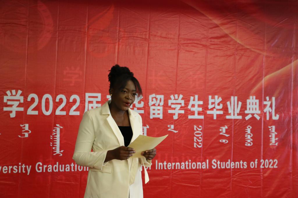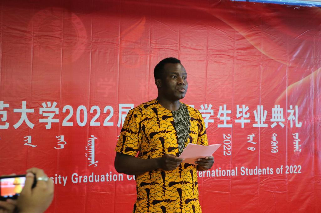 来自巴基斯坦的硕士研究生海达雅、来自蒙古国的本科生额尔登其其格、来自多哥的自费语言进修生本尼克和高飞作为毕业、结业生代表先后发言。同学们在发言中回顾了自己在ac米兰官网中文网站度过的美好时光,以及感受到的学校的温暖与力量,表达了对中国政府、对母校、对老师们的感谢与不舍。期待能成为中外友好使者,立志做一名讲好中国故事的国际传播者。