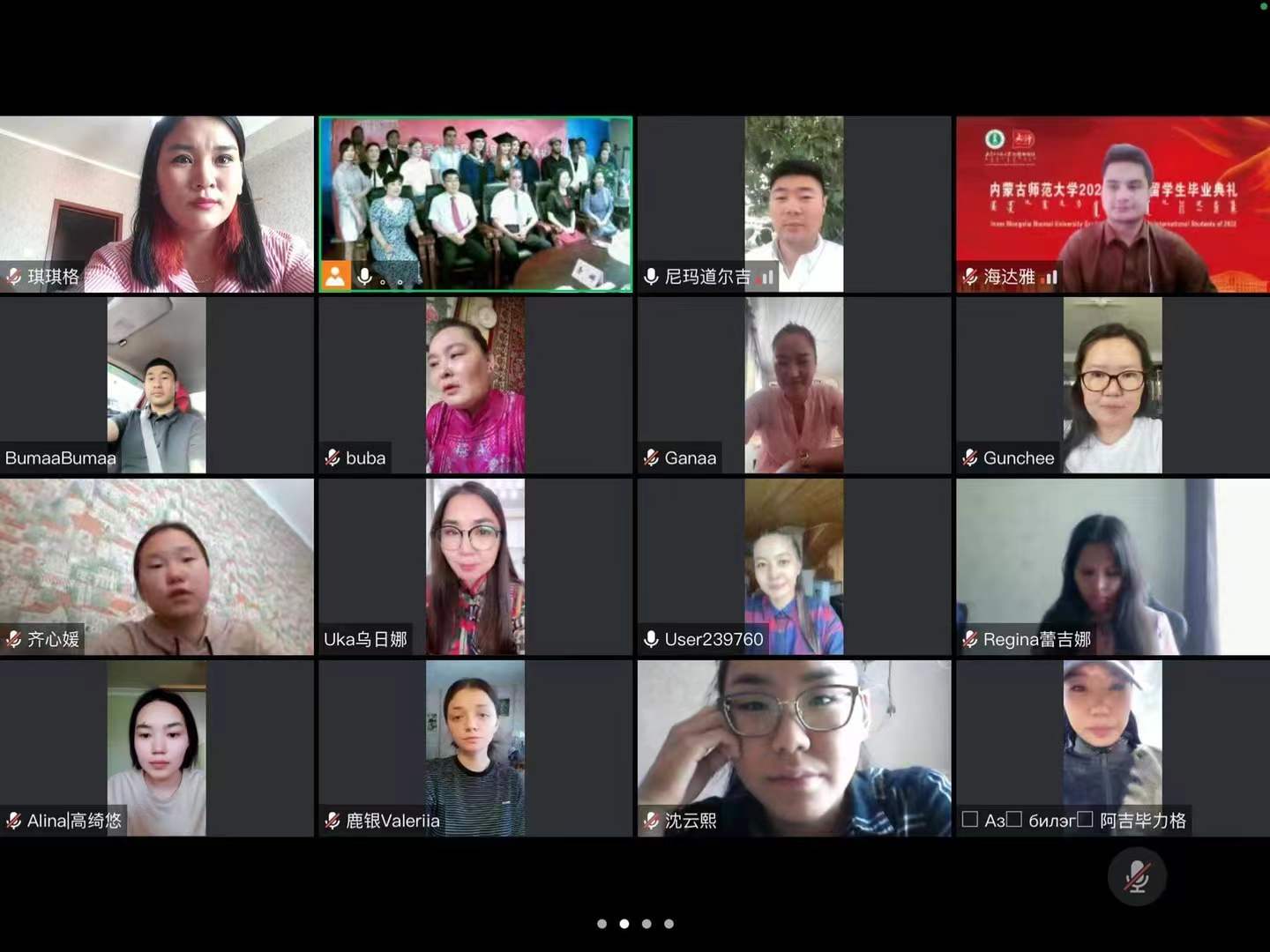 在悦耳的校歌声中,毕业典礼拉开序幕。典礼开始,线上线下的老师和同学们一同观看校党委书记阿拉坦仓教授和校党委副书记、校长李树林教授毕业寄语视频。