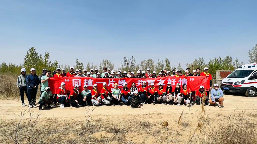 留学生们通过共同栽下象征着中外青年友好的一棵棵小树苗,种下希望,为春天的恩格贝增添了一道靓丽风景,为绿色生态文明建设做出了一份贡献。