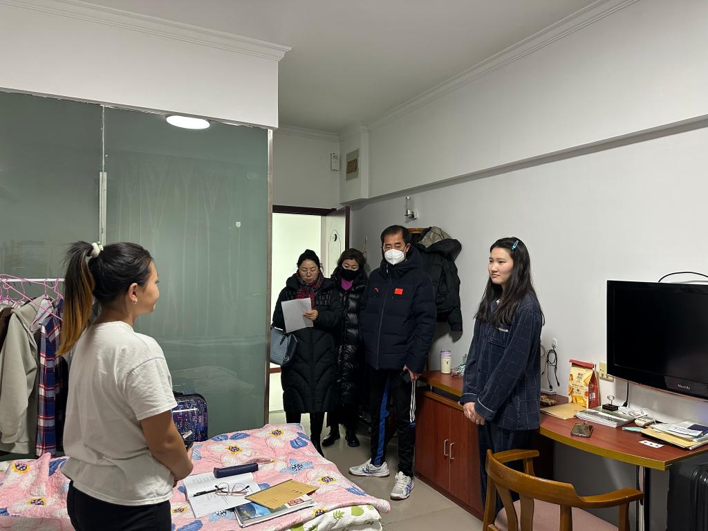 为了留学生公寓安全、整洁、卫生和进一步加强留学生的住宿纪律,全面落实学校安全稳定工作精神,于2023年12月9日晚ac米兰官网中文网站党总支书记屈原带领留学生管理科辅导员们开展了留学生公寓安全大检查。
