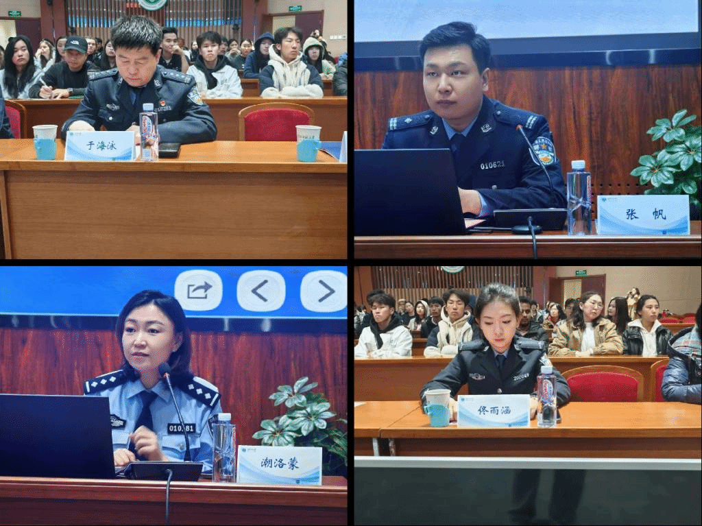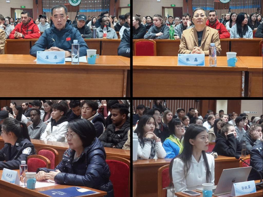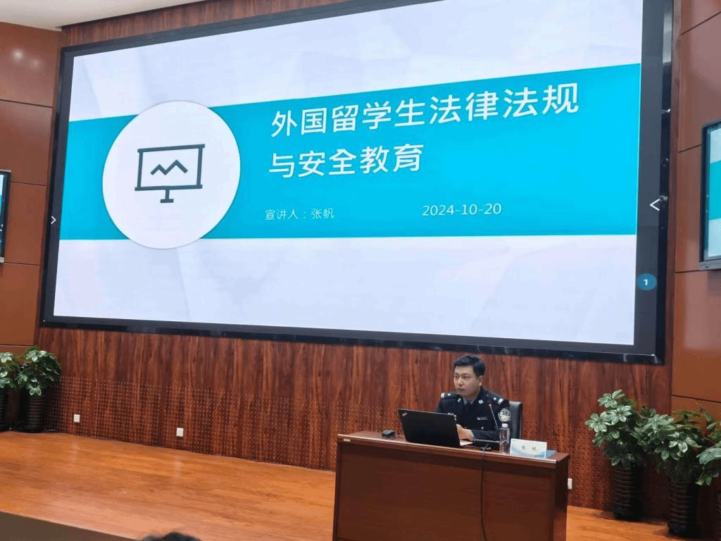 呼和浩特市公安局政保大队张帆警官做外国留学生法律法规与安全教育宣讲。张警官图文并茂地向同学们普及相关的法律法规,引领同学们深刻理解法条中蕴含的法律理由、法律要旨及中国的法治精神。最后张警官从人身安全、交通安全、财产安全、消防安全、网络安全及心理健康等方面进行讲解,帮助留学生提高安全防范意识。