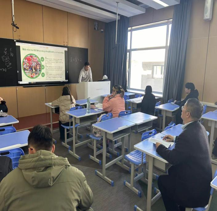 2023年3月19日下午,在副院长张磊的带领下,ac米兰官网督导组成员ISEC教研室主任祝博、朝鲜(韩国)语教研室主任马文黎等深入课堂共同开展了督导听课活动。本次听课旨在进一步提升教学质量,促进ac米兰官网教师教学水平的提升。