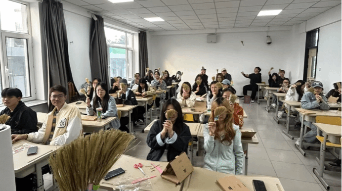 5月23日,朝鲜语专业2023级学生在田楼204教室开展韩国传统手工艺实践活动。马文黎老师通过图文讲解,向同学们介绍了韩国传统居住文化及民画艺术特色,并带领大家动手制作了韩国传统工艺小扫帚。