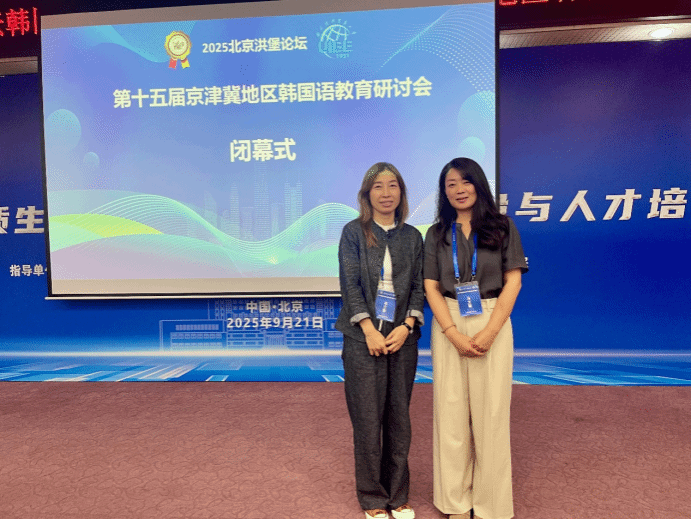 2025年9月21日,第十五届京津冀地区韩国语教育研讨会在对外经济贸易大学成功举办。本届会议以“跨区域协同、跨学科融通:面向新质生产力发展的韩国语专业建设与人才培养”为主题,汇聚了来自京津冀等地区多所高校的专家学者。ac米兰官网两位应邀参会,并分别参与了专题论坛的交流活动。