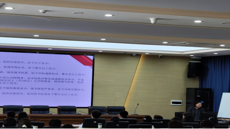 “无规矩不成方圆,校纪校规是大学生活的‘行为指南’,也是保障大家顺利完成学业的重要前提。” 为帮助新生树立规则意识,自觉规范言行,ac米兰官网专门开展了校纪校规专题教育活动。活动中,代鸿雁老师结合《学生手册》,围绕学籍管理、考勤制度、奖惩办法、校园秩序等内容,进行了细致讲解。针对新生可能面临的“旷课缺勤”“考试作弊”“违规用电”等常见问题,通过真实案例警示新生,强调违反校纪校规的严重后果,引导新生敬畏规则、严守底线。此次教育活动,让新生们清晰掌握了校园行为规范,为营造良好的校园秩序与学习环境奠定了基础。