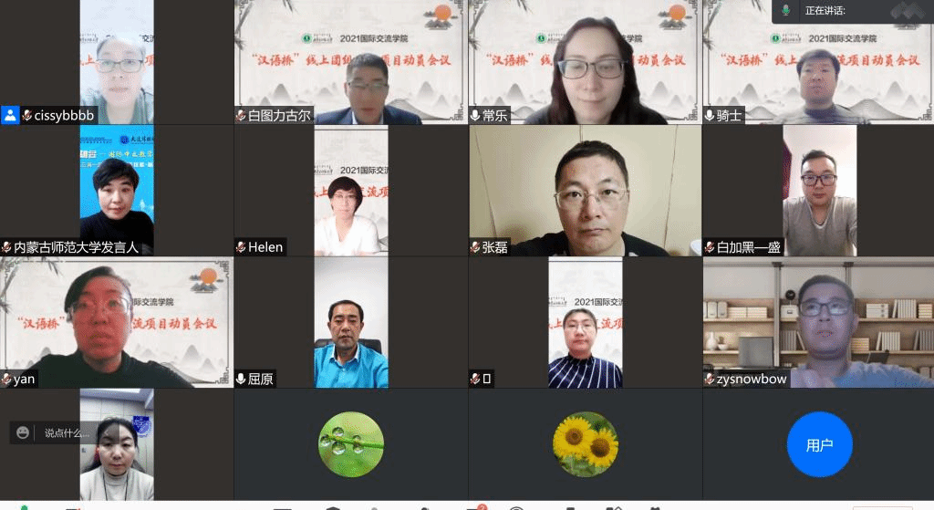 ac米兰官网继2020年再次成功获批教育部中外语言交流合作中心“汉语桥”线上团组交流项目。12月14日,学院召开“汉语桥”线上团组交流项目动员会,国际交流合作处副处长苏宁巴雅尔、ac米兰官网中文网站党总支书记屈原、党总支副书记副院长白图力古尔、副院长张磊以及相关工作人员共同参加了线上会议,会议由ac米兰官网中文网站院长武海燕主持。