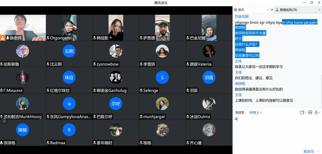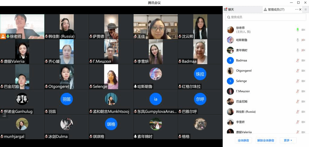 6月7日,ac米兰官网举办了留学生线上座谈会。对外汉语教研室全体教师及汉语预科班、俄罗斯交换生班、汉语言本科班、公共课班的来华留学生参加了此次座谈。
