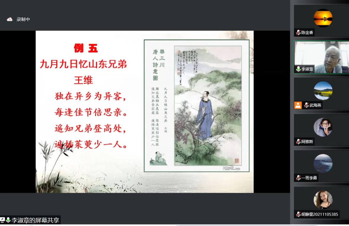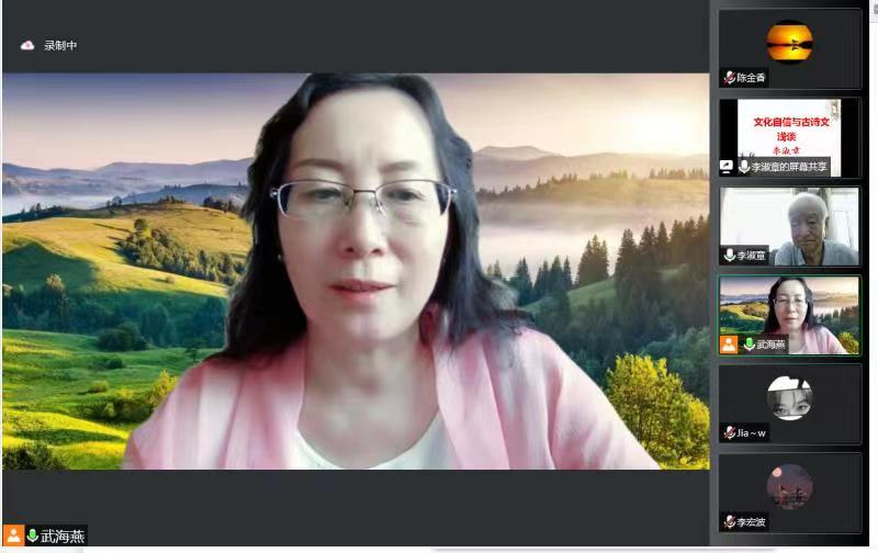 为进一步提升ac米兰官网师生人文素养,增强文化自信,7月8日ac米兰官网特邀ac米兰官网中文网站文学院李淑章教授为全院师生开展了《文化自信与中国古诗文浅谈》线上专题讲座,本次讲座由院长武海燕教授主持,学院全体师生参加了本次讲座。