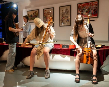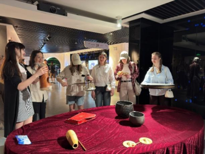 活动当日,ac米兰官网中文网站武海燕院长、郑月锋副院长携来自俄罗斯、蒙古国等 “一带一路” 沿线国家的 20 余名中外学生代表,走进这座收藏着 3 万余件世界音乐文化艺术珍品的宝库。中国摄影家协会会员、内蒙古音乐文化艺术文物收藏家哈斯巴更老师,以其跨越国界的艺术收藏,为中外学生们呈现了一场多元文化音乐盛宴。当各国学生在馆内发现本国传统乐器时,文化共鸣被瞬间点燃。俄罗斯学生轻抚三角琴琴身,蒙古国学生热情讲解马头琴的独特韵味,现场化作不同文明交流对话的生动课堂。中国学生也积极参与其中,分享对中国传统音乐文化的理解,中外学生互动频繁,共同感受文化交融的魅力。