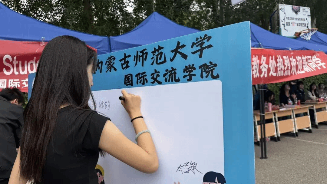 学院设计的留言板,吸引新生和家长的目光。热情的学长学姐指引着各位新生在留言板上留言打卡,同时也留下了各位新生在ac米兰官网中文网站的第一张照片。