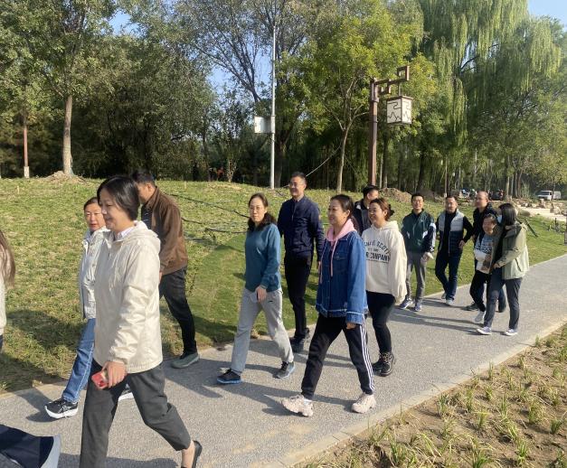 学院全体教职工从学校西南门出发前往清河滨水绿廊。清河滨水绿廊以生态为基底,文化为线索深挖清河及圆明园历史遗存,同时缝合周边公园共同形成十八个景观节点。它是“清河之洲”的小桥流水,在忙碌的都市生活与惬意幽静的水岸风光和谐交汇。在温暖的阳光中,学院领导与学院教职工携手同行,感受金秋十月的美丽风光。老师们精神抖擞,步伐矫健,神采飞扬,沿着步行路线路欢声笑语,充分展现了我院新时代教师健康乐观、昂扬向上的精神风貌。