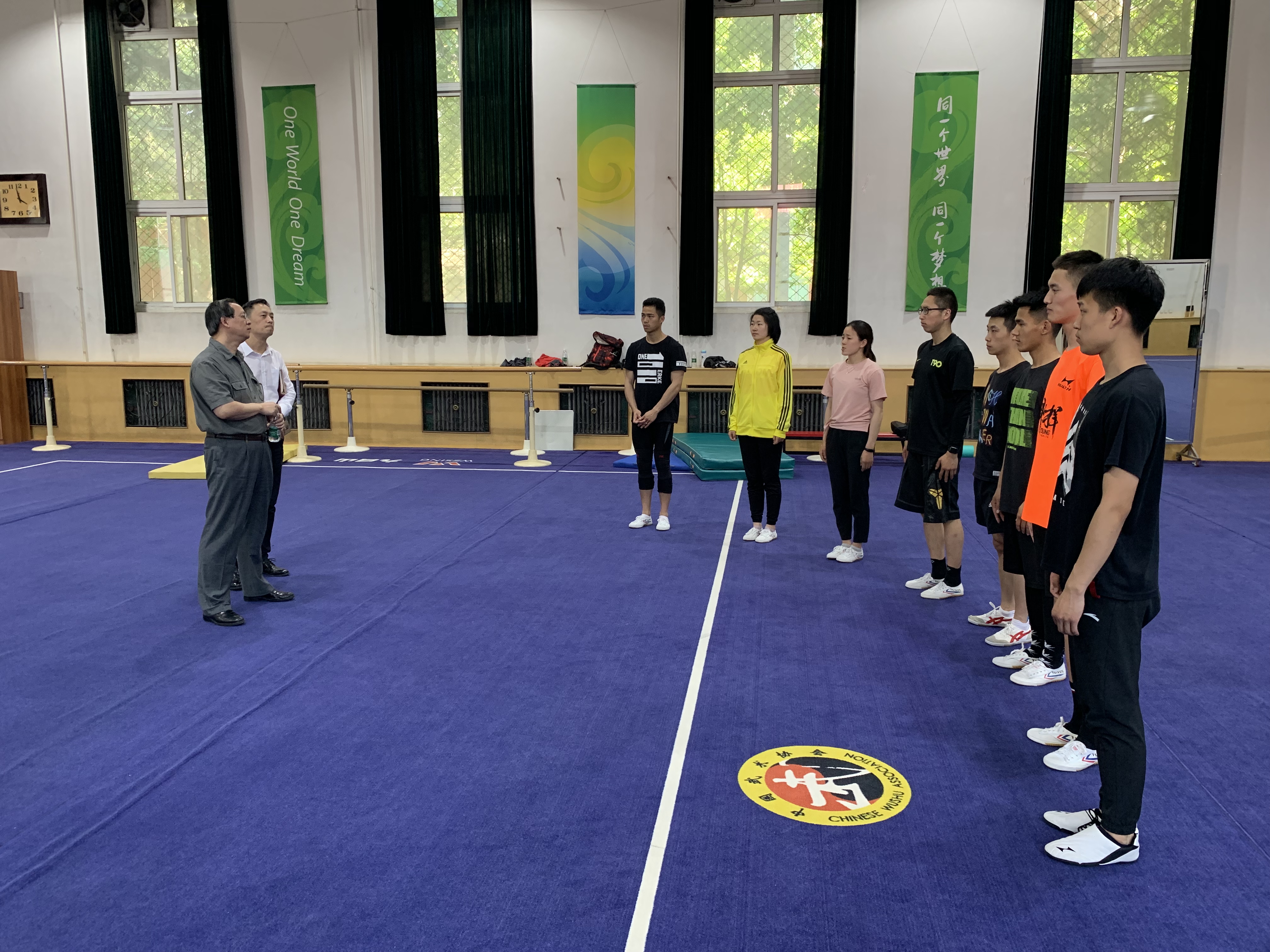 2019年5月21日下午,副校长高峰前往南武术馆,看望正在积极备战全国高校体育教育专业学生基本功大赛的师生们。教务处、XPJ官方网站等相关部门和单位的负责人随行观摩。